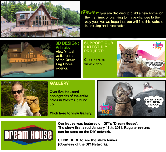 The 'Holistic-Green' philosophy for the 'Green Log Home' is born from real-life experiences, and countless hours of research. We are not scientists, nor do we claim that our choices are the best ones for you. These experiences are intended to point you in the right direction, by providing information that will enable you to make informed choices and decisions.